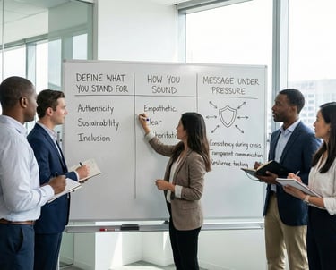 • We define messaging, tone, and structure before writing begins.